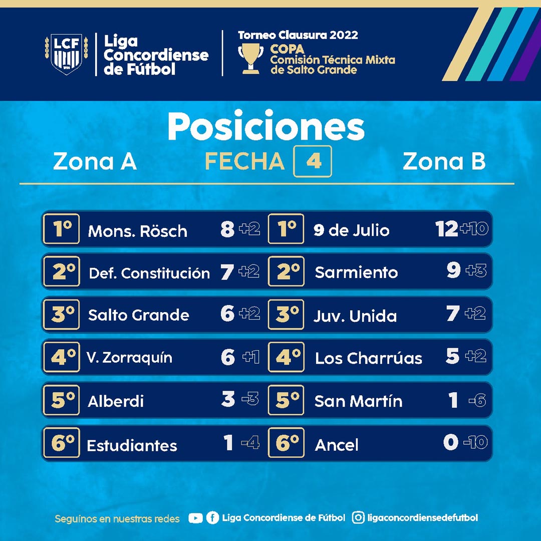 Se jugó de manera integra la cuarta fecha de la Primera B del Torneo Clausura. 9 de Julio derrotó sin inconvenientes a San Martín y se transformó en el primer semifinalista del certamen con puntaje ideal. Sarmiento se quedó con el choque de escoltas al imponerse ante Juventud Unida. Monseñor Rosch mantuvo el liderazgo al empatar sin tantos ante Salto Grande mientras que Constitución volvió a sumar de a tres al darle vuelta el partido a Estudiantes. Villa Zorraquín le ganó a un alicaído Alberdi y Charrúas derrotó bien a Ancel.