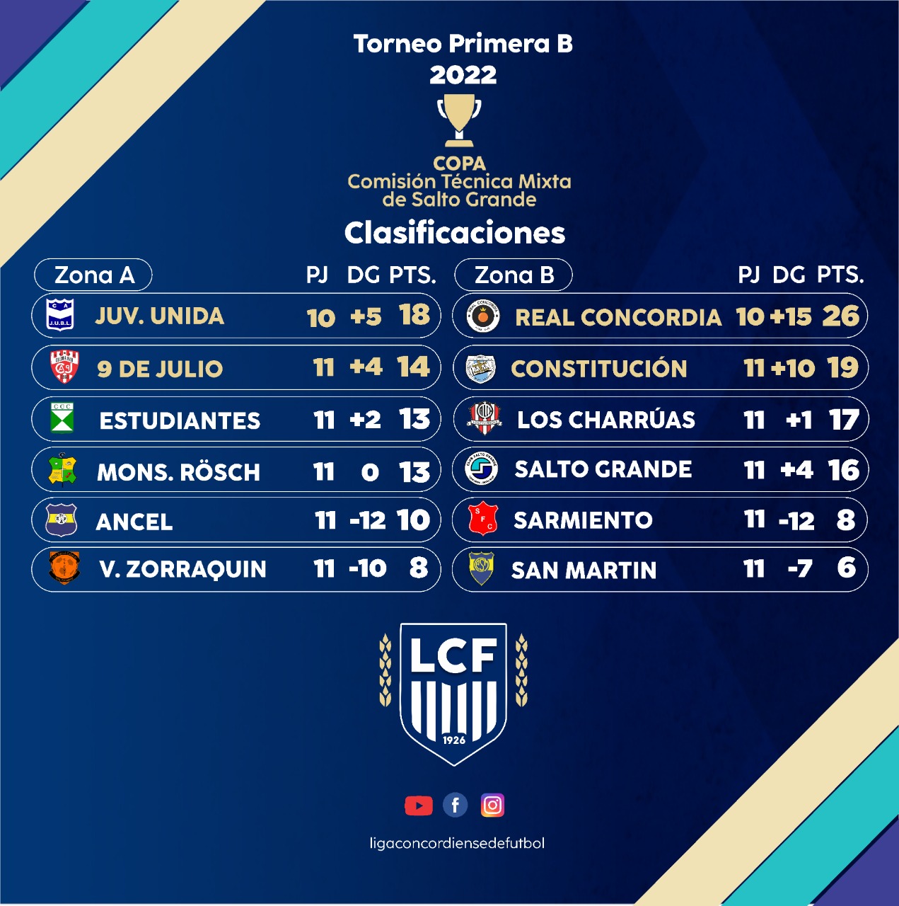 En consecuencia, las semifinales serán Juventud Unida vs. Constitución y Real Concordia vs. 9 de Julio, con ventaja para los que terminaron primeros en la zona en caso de empate.