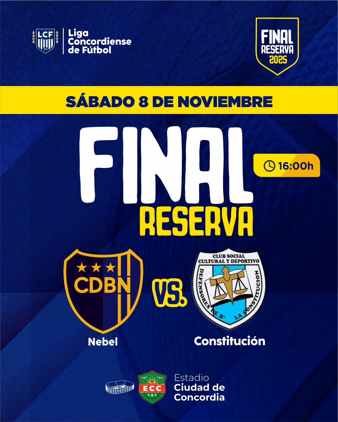 Desde las 16 horas, también en el Estadio Ciudad se disputará el desempate entre Defensores de Nebel y Defensores de La Constitución. Ambos terminaron la fase regular punteros con la misma cantidad de unidades y por este motivo se verán las caras en una «final» para determinar quien se queda con el título.