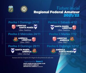 Comienza el Torneo Regional Amateur y Concordia tiene dos representantes. Éxitos para las dos instituciones que nos estarán representando en el torneo de ascenso que organiza el Consejo Federal de Fútbol de AFA. Este domingo arranca la ilusión para Libertad y Santa María de Oro que se enfrentarán 17 horas en el Parque Mitre.