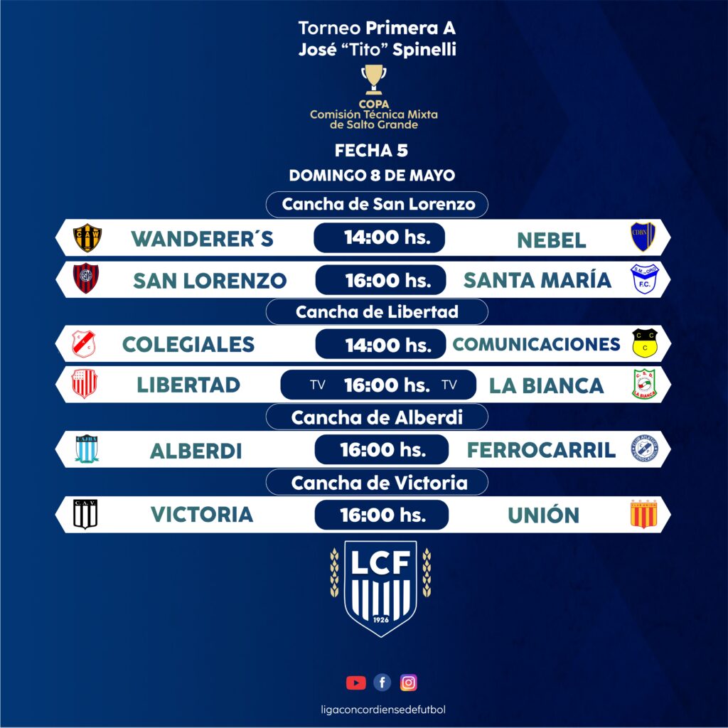 En la noche de este miércoles 4 de mayo en el salón principal de la Liga Concordiense de Fútbol se llevó adelante la habitual reunión de la mesa directiva presidida por el Dr. Julio Larrocca, acompañados por el vicepresidente de la institución Cr. Horacio Sandoval y secretario Sr. Daniel Odiard que juntos a los delegados y presidentes de los clubes dieron a conocer la programación para este fin de semana en el Torneo José “tito” Spinelli, Copa Comisión Técnica Mixta de Salto Grande.