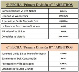 DESIGNACIONES DE LA FECHA 9 DE LA «A» Y LA 6 DE LA «B»