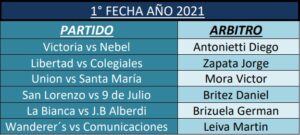 DESIGNACIONES PARA LA FECHA 1 DE LA DIVISIONAL «A»