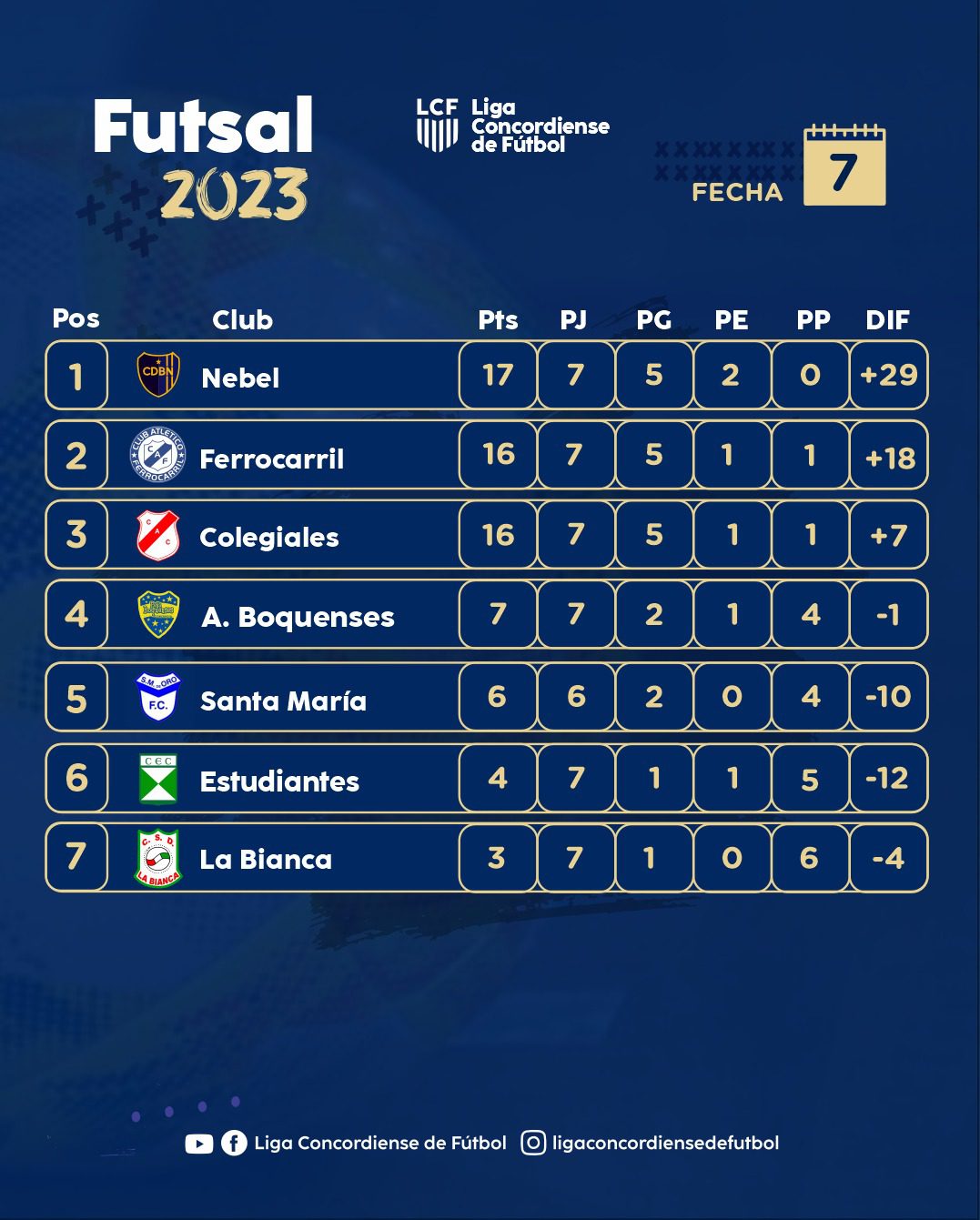 El domingo se disputó la novena fecha del Torneo de Futsal. En el choque de encumbrados, Defensores de Nebel y Colegiales igualaron 9 a 9. Ferrocarril no les pierde pisada tras triunfar por 7 a 5 ante Asociación Boquenses mientras que La Bianca coniguió su primera victoria de la temporada al derrotar 6 a 0 a Estudiantes