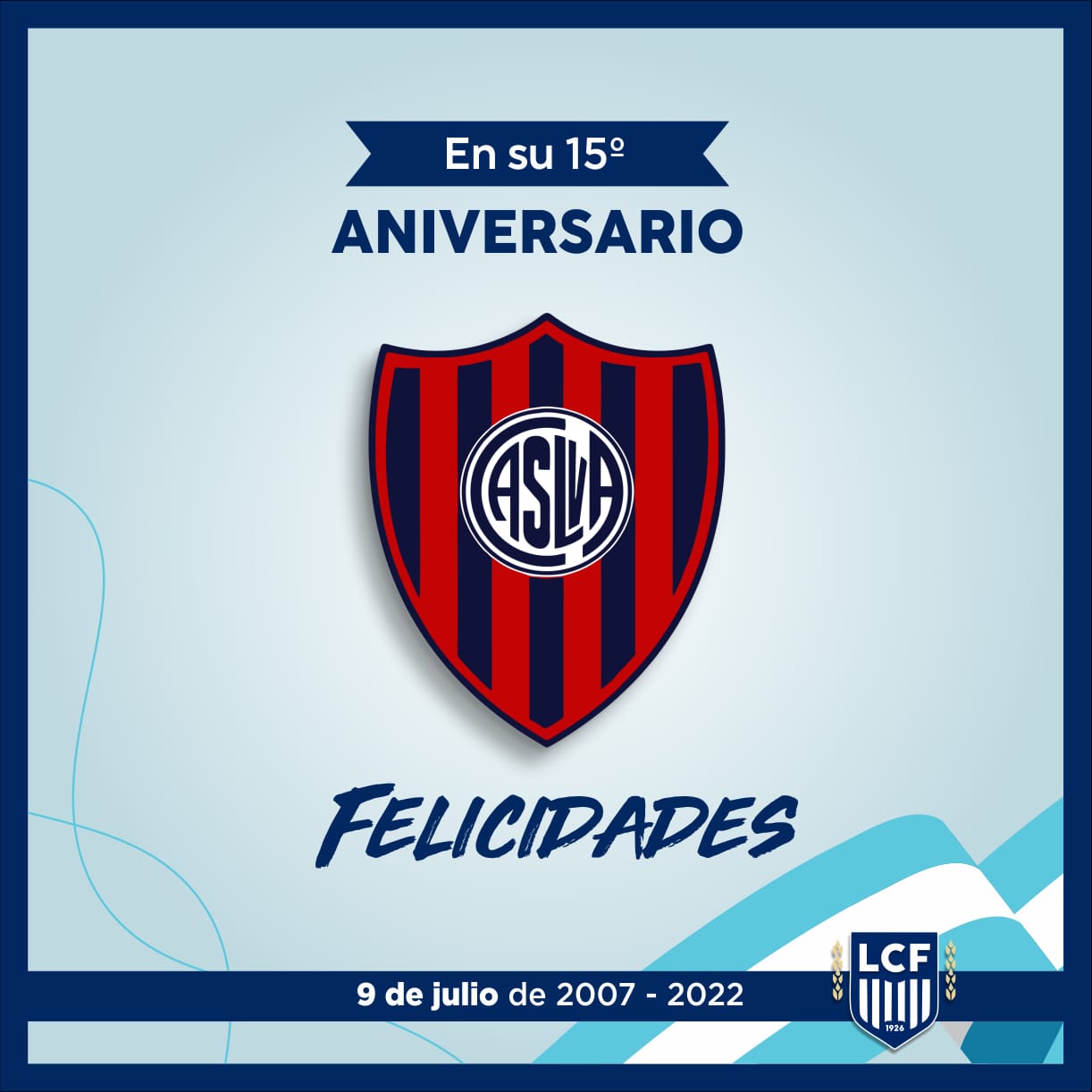 También saludamos a Juventud Unida de Benito Legerén (80), 9 de Julio de Colonia Ayuí (54) y San Lorenzo de Villa Adela (15) por un nuevo aniversario de vida.
