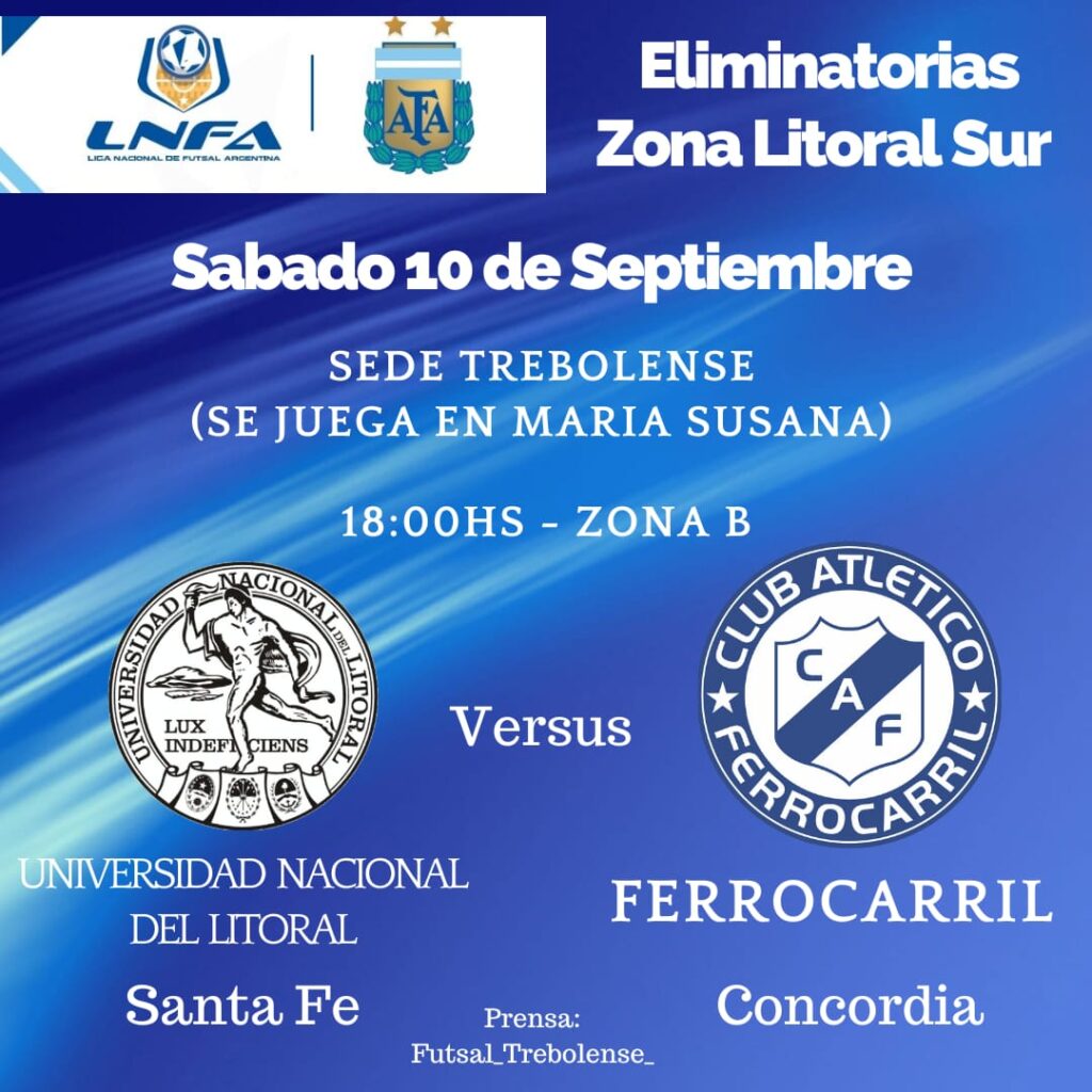 Comenzó la ilusión nacional para el plantel de Futsal del Club Atlético Ferrocarril Concordia que partió esta tarde con la presencia del secretario del Departamento del Futsal de la Liga Concordiense Tomás Salarí, rumbo a la ciudad de El Trébol, Provincia de Santa Fe para disputar la Eliminatoria de la Liga Nacional.