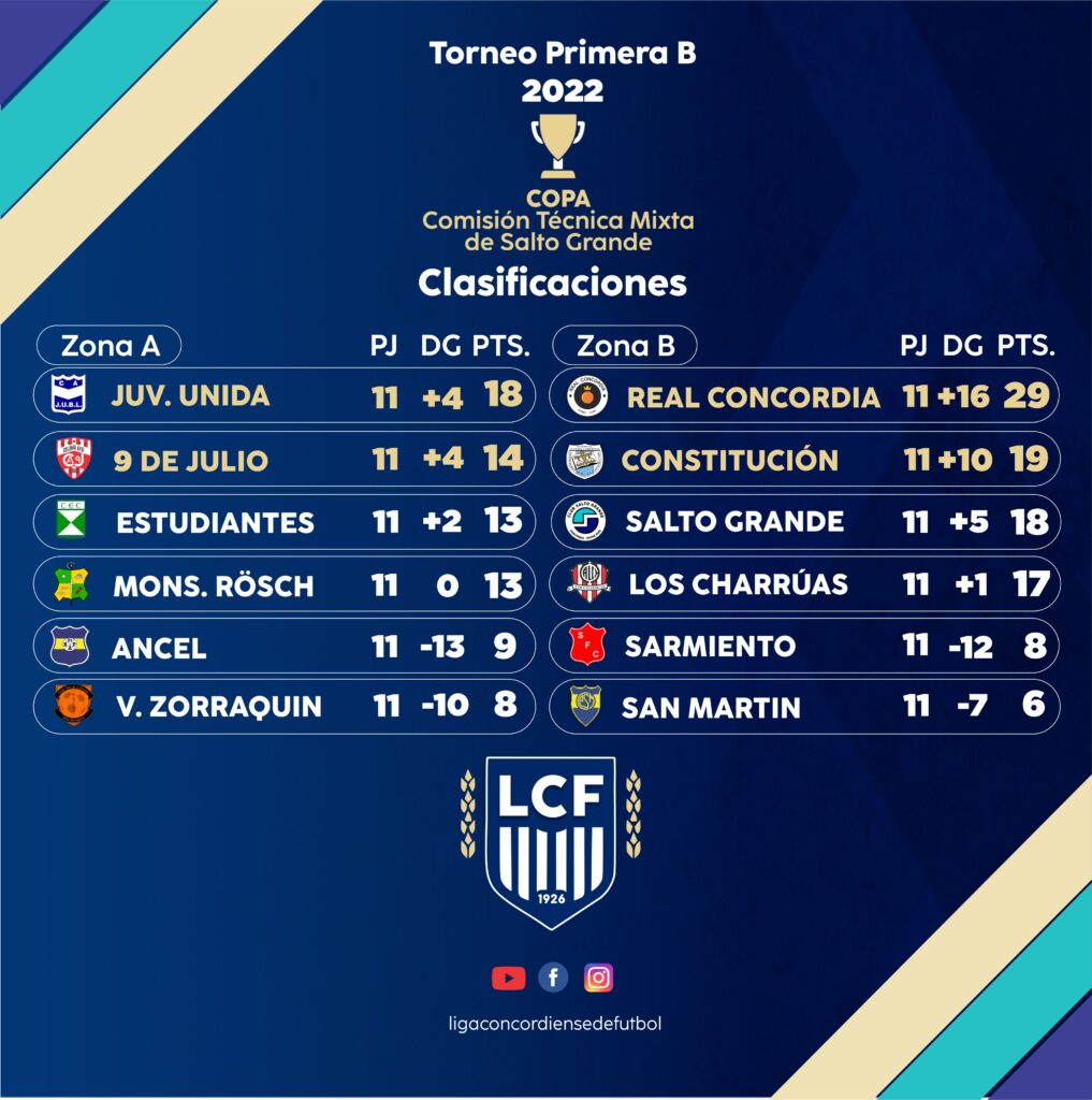 En cancha de Juventud Unida de Benito Legeren con un buen marco de público en la tarde de este domingo, el local y Real Concordia completaron su partido pendiente de la fecha 10 del Torneo de Primera División «B» 2022. Fue triunfo para la visita por 2 a 1 que de esta manera culminó la fase regular invicto con 9 triunfos y 2 empates.
