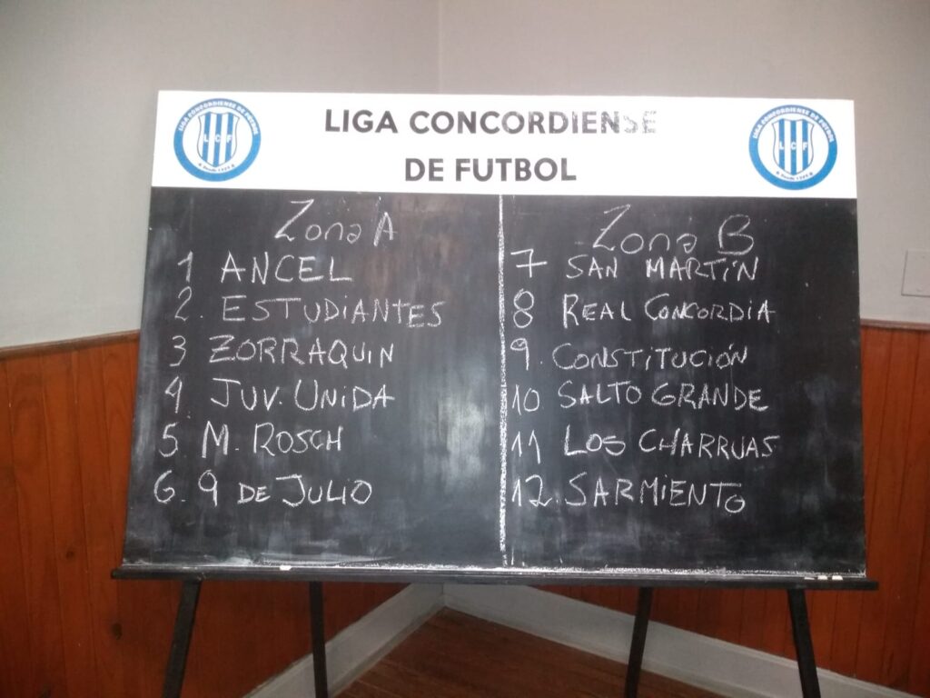 A su término se realizó el sorteo de las zonas para los 12 equipos conformando Zonas A y B a jugarse todos vs. todos, en la primer ronda vs. los rivales del mismo grupo y en la segunda ronda los interzonales, avanzaran a un petit torneo los primeros dos ubicados de cada grupo en el camino el ascenso que otorga a la Divisional A. El mismo fue transmitido y compartido a traves de la cuenta oficial de Facebook de Liga Concordiense de Fútbol