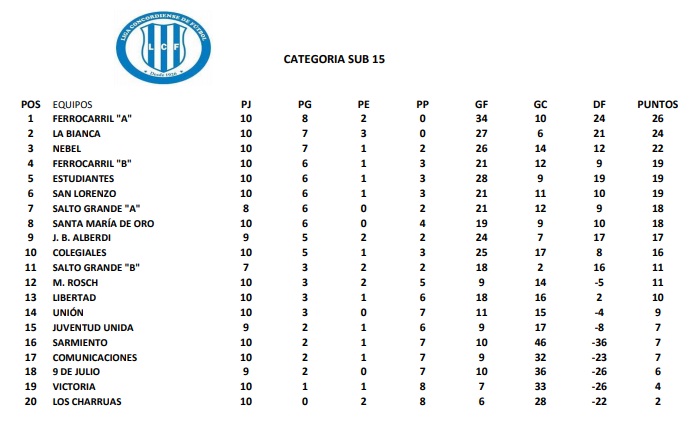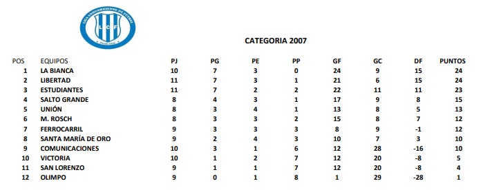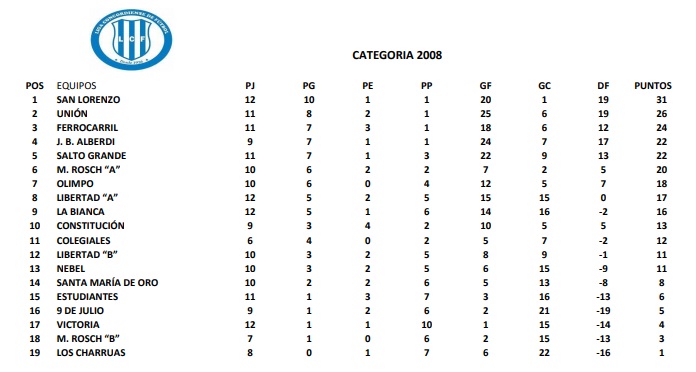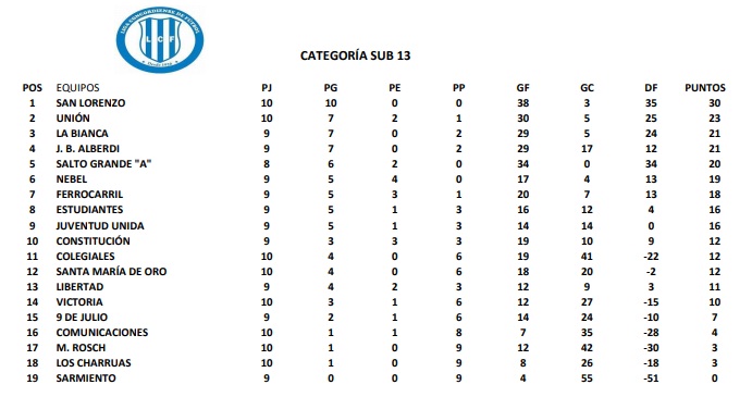 Aquí la tabla actualizada de las categorías del Infanto Juvenil «Rubén Ferrer»