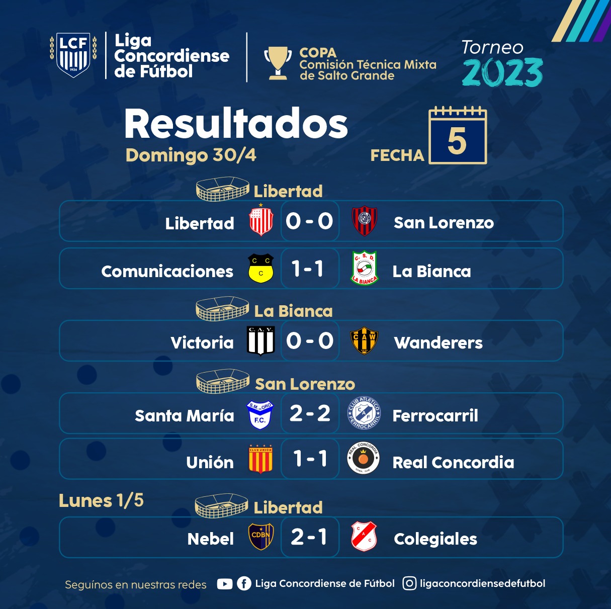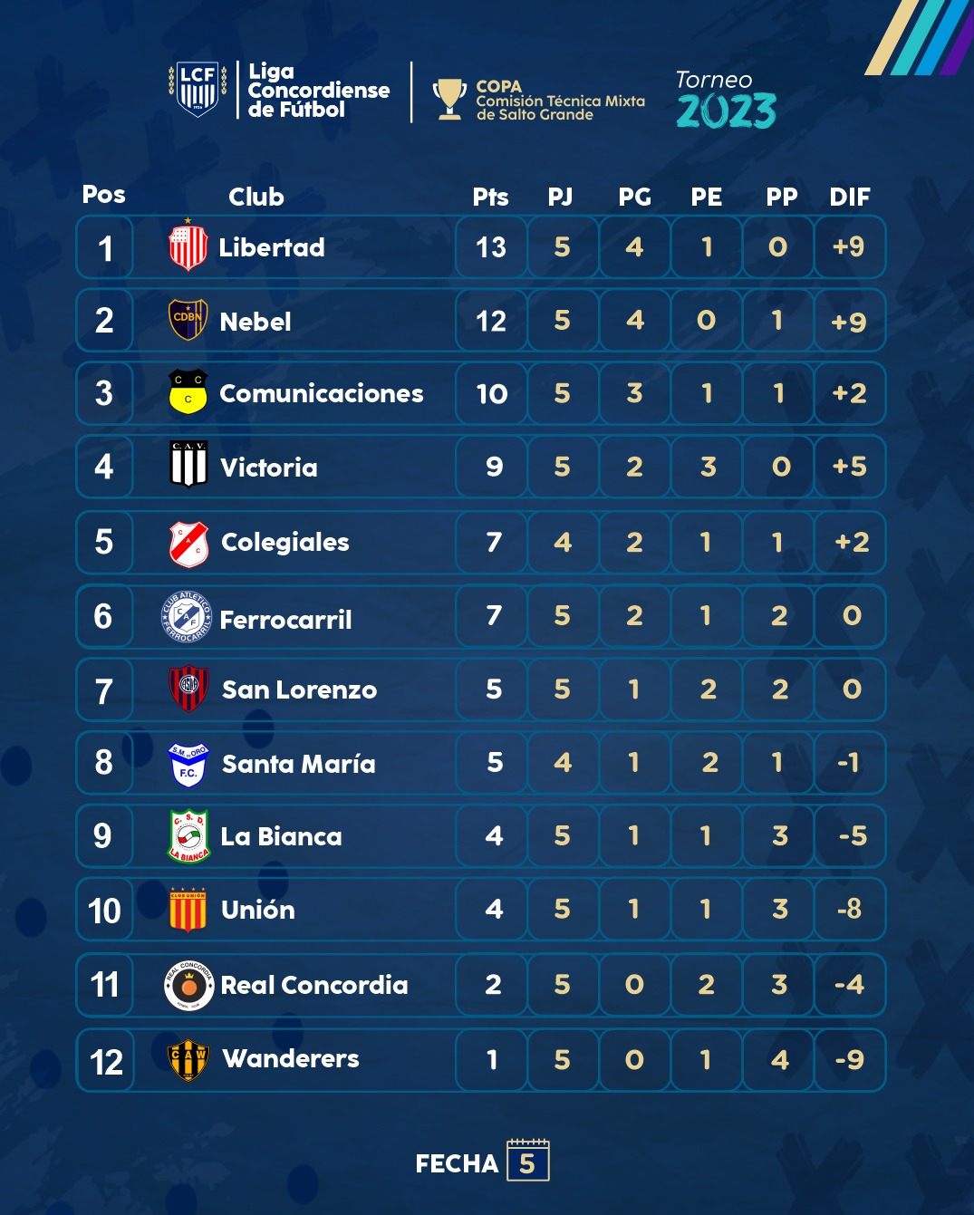 El lunes por la tarde en el Parque Mitre se cerró la quinta fecha de la Primera «A» Copa Comisión Técnica Mixta de Salto Grande. Defensores de Nebel le ganó 2 a 1 a Colegiales y quedó segundo a un punto de Libertad.