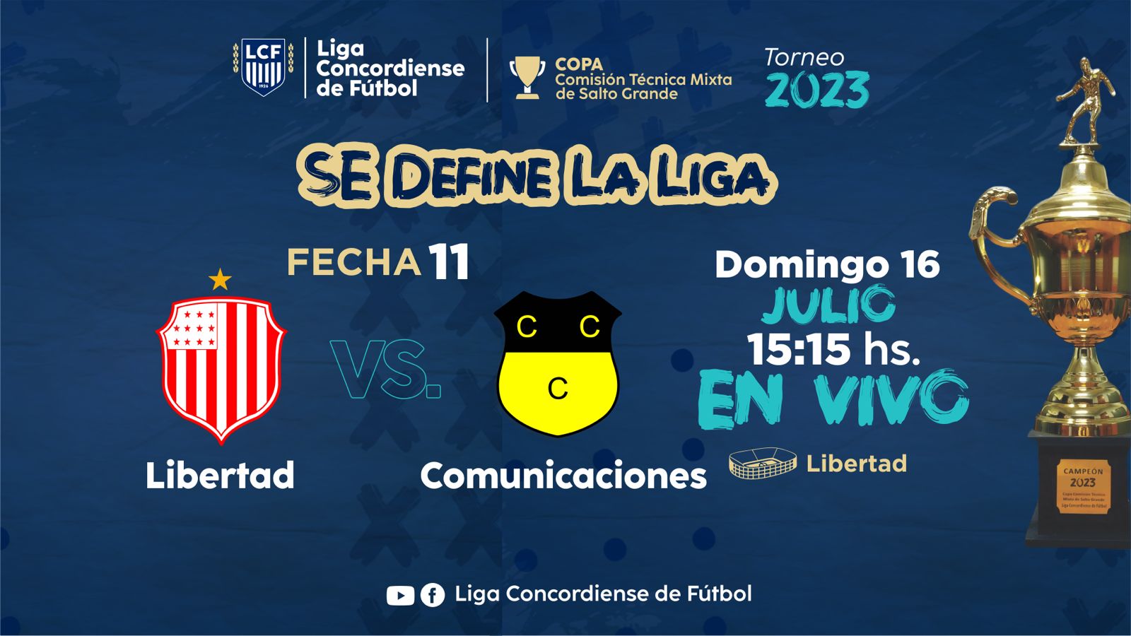 Se juega este domingo la última fecha del Torneo de Primera División de la Liga Concordiense de Fútbol y toda la atención estará puesta en La Criolla y Libertad. Es que allí jugarán los contendientes al título, ya que han quedado sólo dos con chances de ser campeón.