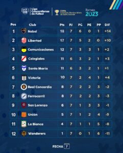 Resultados y tabla de posiciones luego de la séptima fecha de la Primera «A» de la Liga Concordiense de Fútbol.