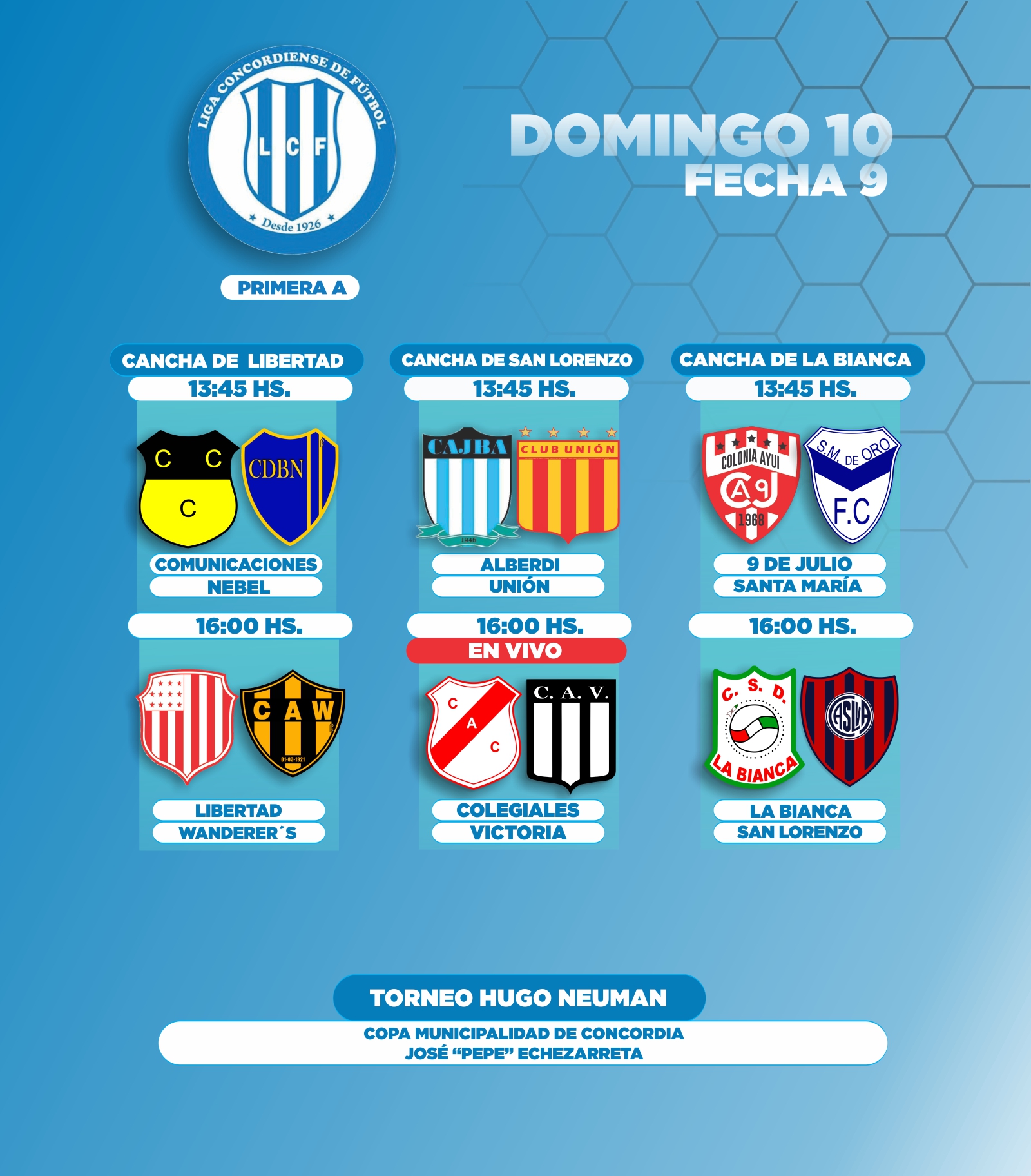 Se dió a conocer la anteúltima fecha del Torneo Hugo Neuman Copa Municipalidad de Concordia José «Pepe» Echezarreta tal como fuera informado previamente por los medios oficiales de la Liga horas antes, la misma se jugará en tres canchas el dia domingo de la siguiente manera: