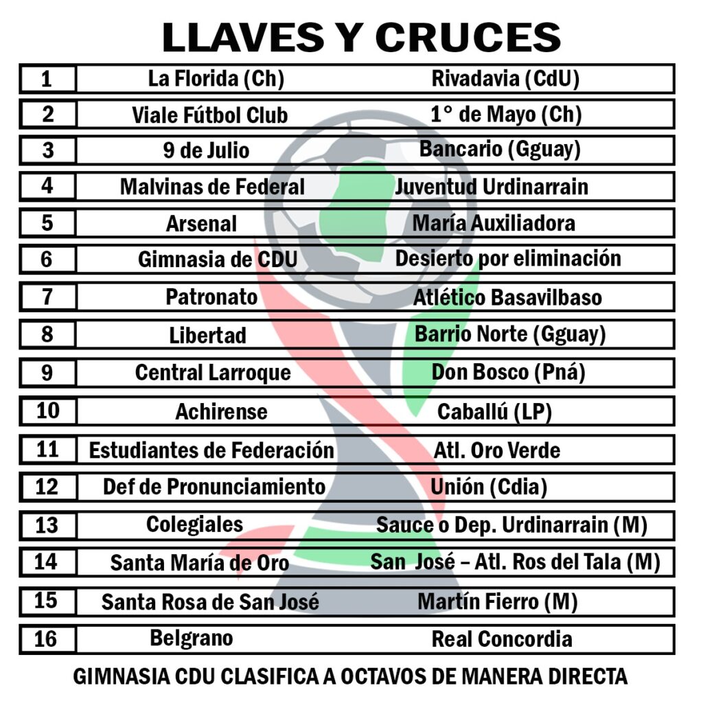 Con 6 presencias concordienses así quedaron establecidos todos y cada uno de los encuentros para la siguiente fase en la máxima competición provincial a nivel clubes.