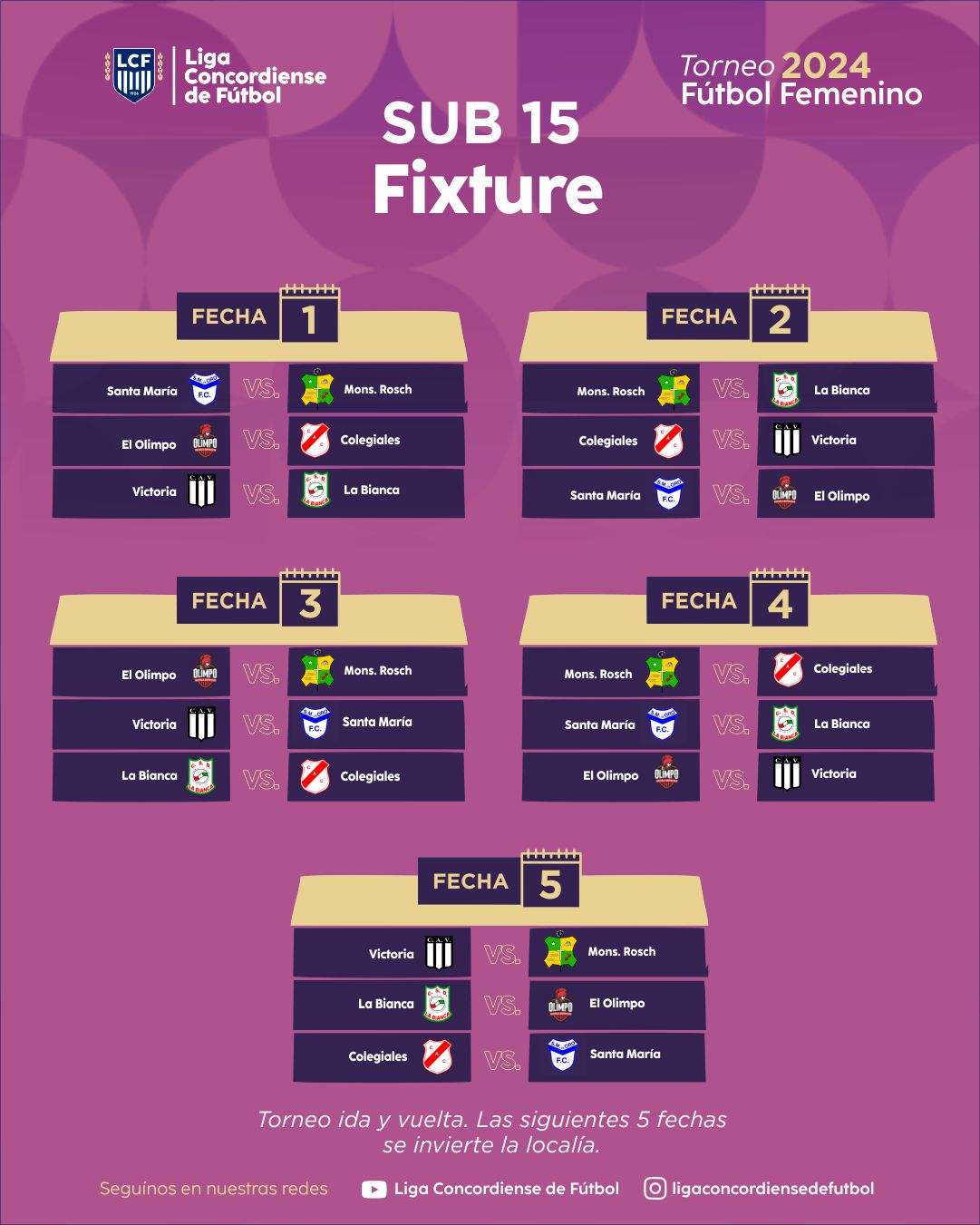 Aquí esta el Fixture del Fútbol Femenino en su Primera División, Sub 15 y Sub 12