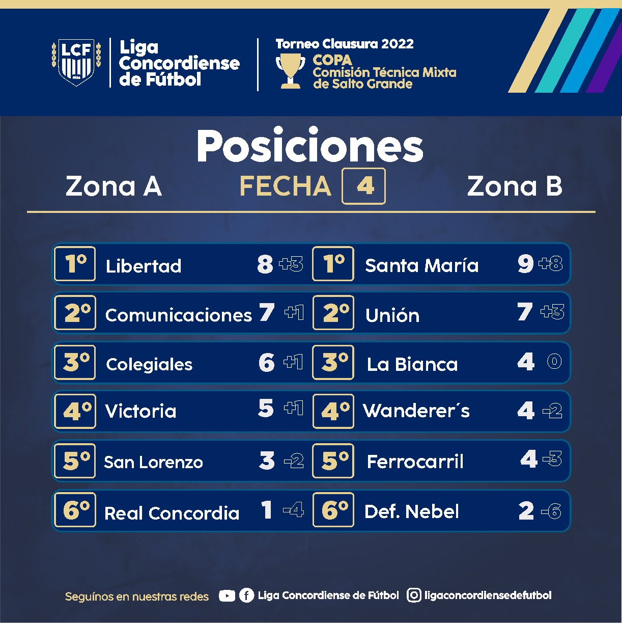 Se jugaron cinco partidos correspondientes a la cuarta fecha de la Primera “A” del Torneo Clausura Copa CTM Comisión Técnica Mixta de Salto Grande. Unión derrotó a Nebel y quedó cerca de la clasificación. Libertad y Colegiales terminaron 1 a 1 al igual que Real Concordia ante San Lorenzo. En la cancha de Victoria, Comunicaciones se prendió en la lucha luego de dar vuelta el partido y ganarle a los dueños de casa y primeramente, Ferro le ganó por la mínima diferencia a Wanderer´s. El encuentro entre La Bianca y Santa María de Oro fue suspendido porque las hinchadas se arrojaron proyectiles antes de comenzar el juego.