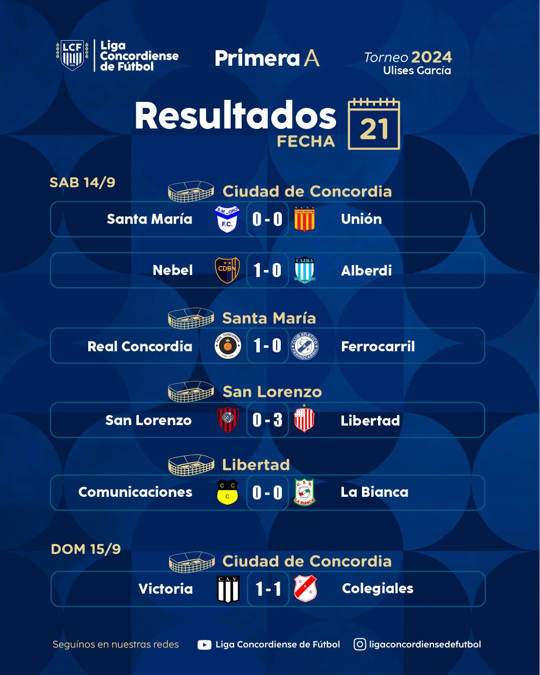 El domingo por la noche en el Estadio Ciudad de Concordia, Victoria y Colegiales empataron 1 a 1 en el cierre de la Fecha 21 de la Primera «A» Torneo Ulises García. Este miércoles se jugarán los tres pendientes de la 20.